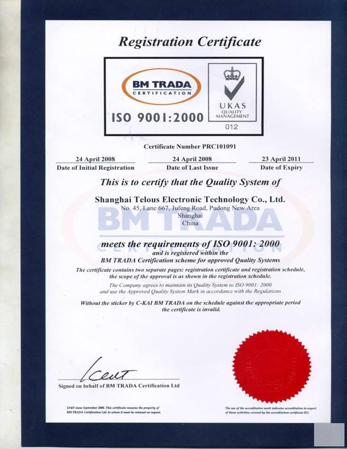 本公司獲得ISO 9001:2000質量管理體系資格認證
