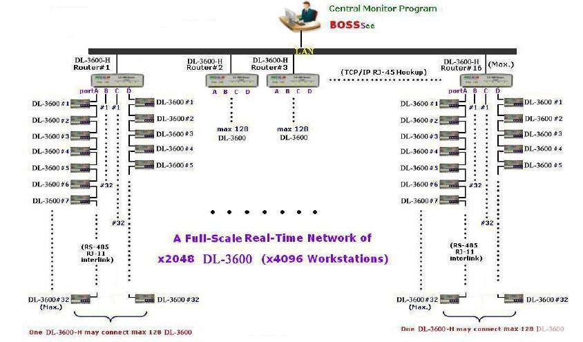 網路配置: 標準配套 多部完整之監測器+連網路由器+信號連接線+BOSS-see網路管理軟體