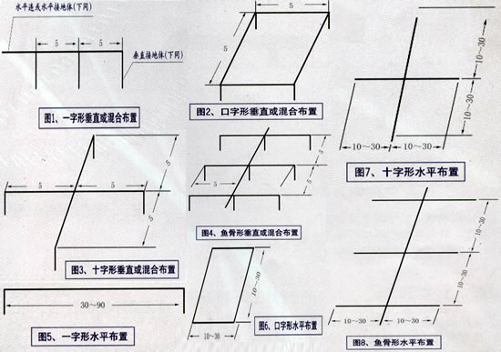 此法適用于地形狹窄而又不便深挖的條件差的情況。水平與垂直接地坑的深度均可適當比規定值淺些。